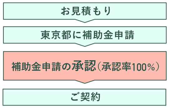 もし補助金が承認されなければ、その時点で契約を断れます。東京都の補助金は「申請後に契約」がルールになっているので、安心なのです。